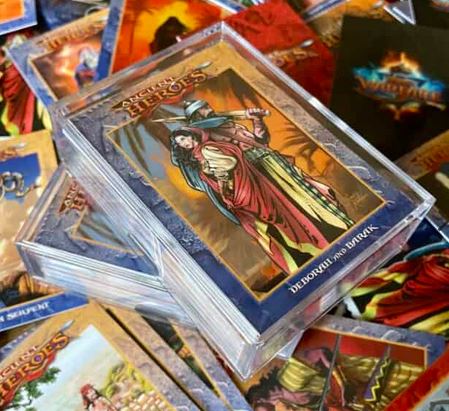 Do you want all the Ancient Heroes trading cards? This complete set includes all the 48 cards and are packaged in a hard plastic, sturdy, 2-piece clear slider box, The slider box is great to store your cards!
